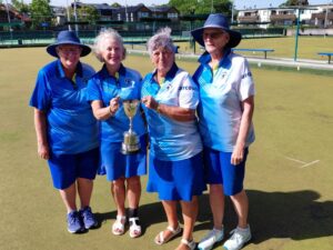The club champs Women’s Fours was won this year by Sheryl Wellington, Jan Gledhill, Colleen Rice, Theresa Rogers. Runners up are Hanaan Shahwan, Kerin Roberts, Joy Finney, Julie Chhour.