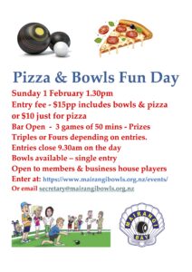 On Sunday start February with an afternoon of fun fast bowls followed by Pizza and a drink. Entries online and if you just want pizza after just note that next to your entry.
