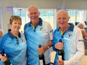 There were hams for the first three places and bottles of bubbly for 4th place all of which were competed for by 18 teams. Every endeavour was made to balance the teams which was not made easy by a couple of late withdrawals and at the end of the day 9 teams had 3 or more wins. That meant the other 9 teams had mixed results. Thanks to those who agreed to replace the withdrawals to enable byes to be avoided.
