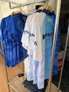 A range of sample sizes of the new shirts are here and they look good.
