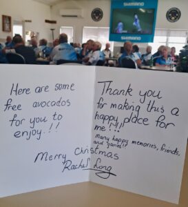 Club members were treated to a large supply of big yummy Avocados and a big Merry Christmas thanks to the lovely Rachel Long. All of the club members sends Rachel their thanks, best wishes and hopes she has a wonderful Christmas.